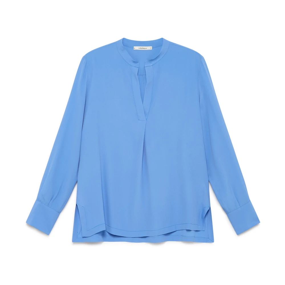 Upgrade je garderobe met deze Maliparmi blouse van zijde en elasthaan. De blouse heeft een klassieke V-hals, lange mouwen met zijsplitten en een tijdloos design. Modelhoogte: 175 cm. Gedragen maat: 40. Samenstelling: 96% zijde, 4% elasthaan.