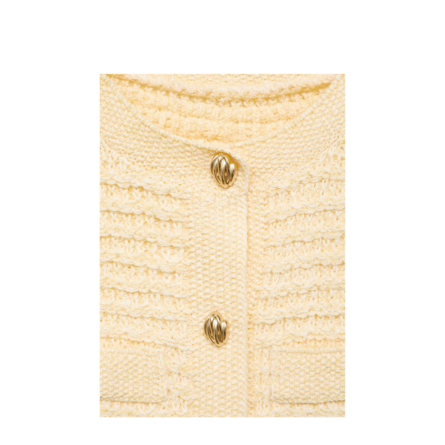 Dit mouwloze Mango gilet voor dames is gemaakt van polyester en katoen. Het heeft een ronde hals en een knoopsluiting. Het gilet is fijn gebreid en heeft een elegante uitstraling zonder zakken.
