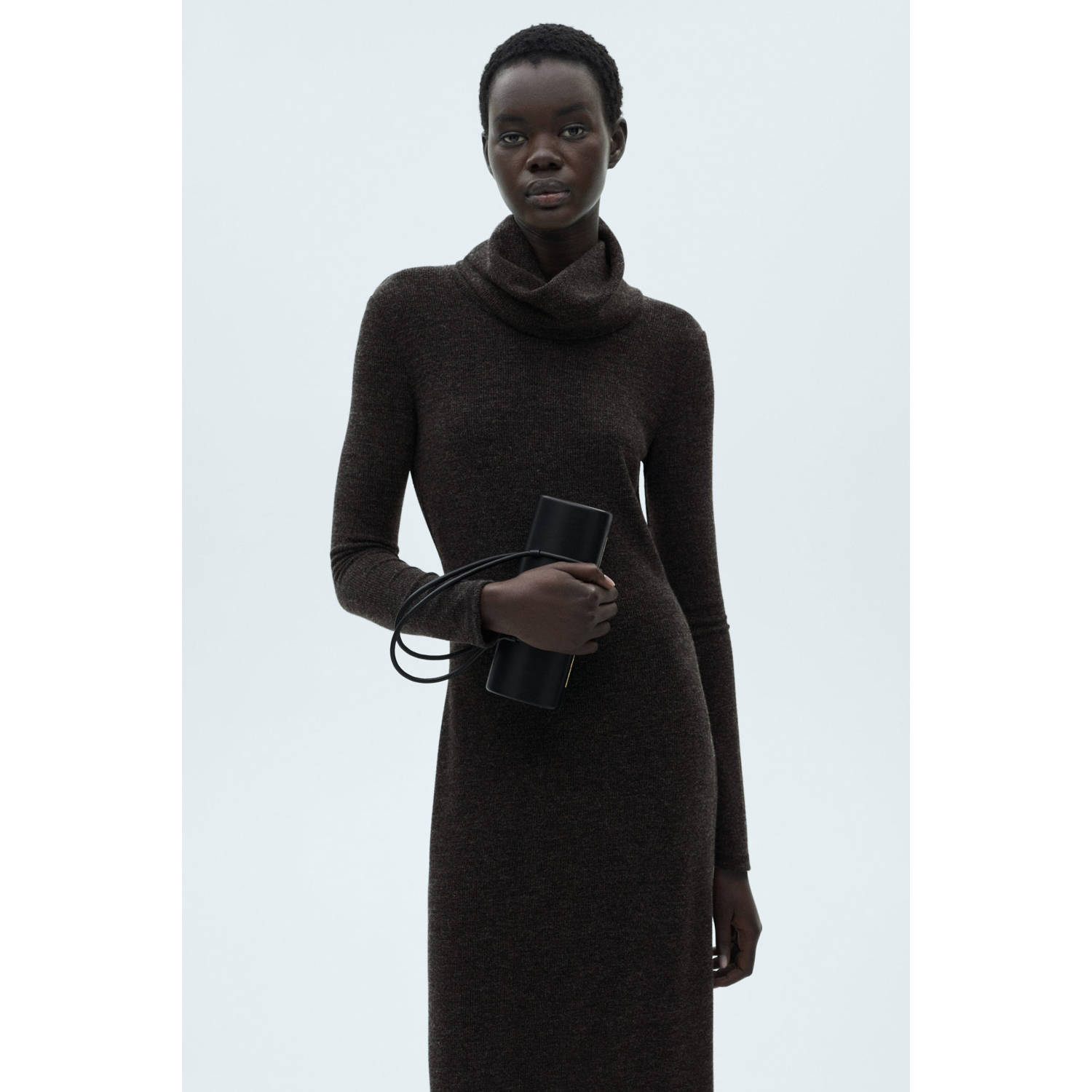 Deze Mango-jurk is mouwloos en gemaakt van polyester. De jurk heeft een strapless kraag en valt tot middenlengte. Met een gebreide afwerking en plooien voor een nette uitstraling.
