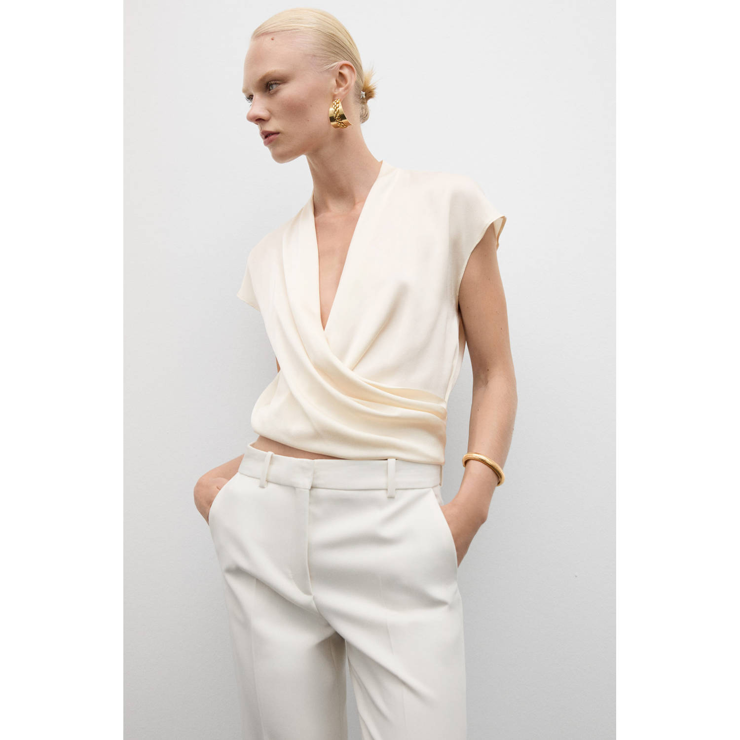 Deze Mango top voor dames heeft een opstaande kraag en korte mouwen. Het is gemaakt van polyester mix en heeft een rib gebreide structuur. De top sluit mooi rond het lichaam voor een stijlvolle look.