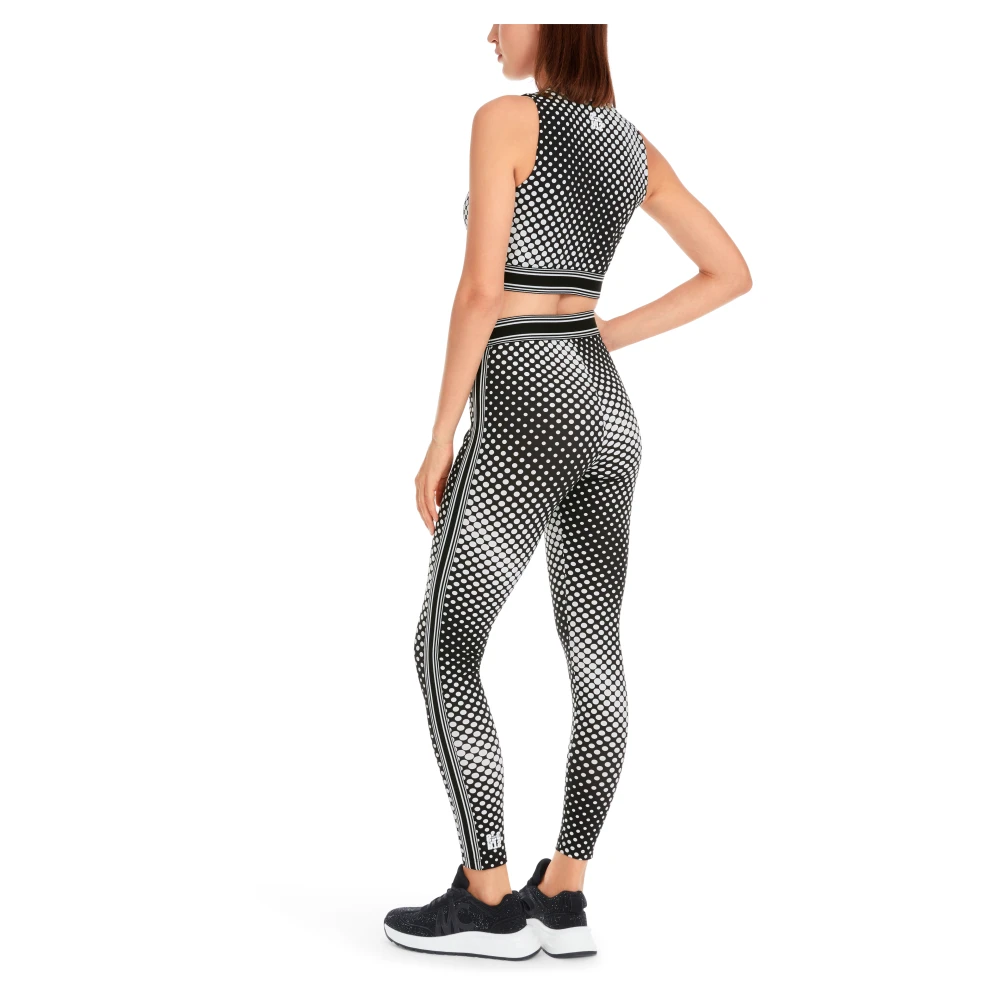 Upgrade je sportieve en casual stijl met deze Marc Cain legging met een opvallend computergrafisch ontwerp. Gemaakt van super rekbare jersey stof, biedt deze legging een slanke pasvorm met een comfortabele elastische tailleband. Het grafische patroon met maatvariatie en streepdetails voegen een unieke touch toe aan het ontwerp. Perfect voor een trendy look onderweg. Model is 179 cm lang en draagt maat N3/38.