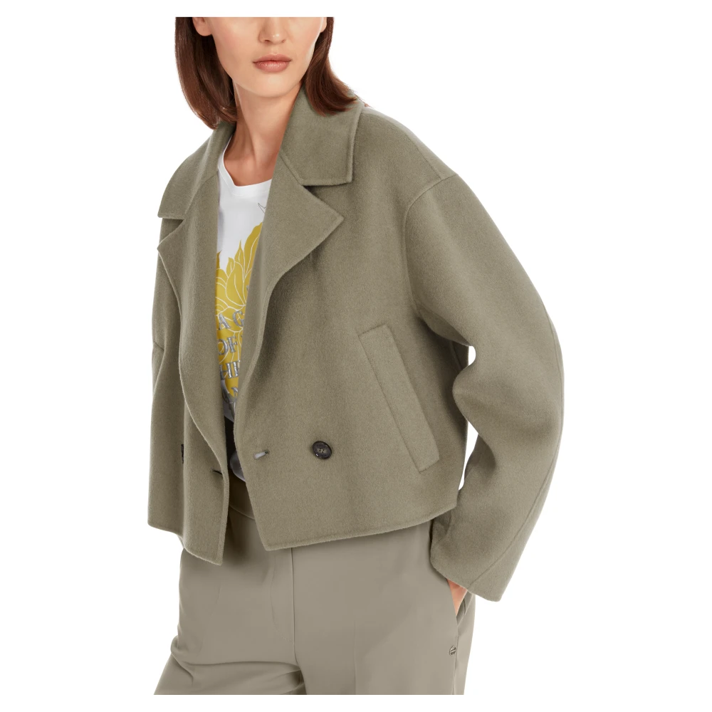 Damesjack van Marc Cain. Los model. Puur katoen. Reverskraag. Knoopsluiting. Strookzakken opzij. Ruglengte bij maat 36: 50 cm. Schouderbreedte bij maat 36: 43 cm. Borstomvang bij maat 36: 41 cm. Mouwlengte bij maat 36: 54 cm