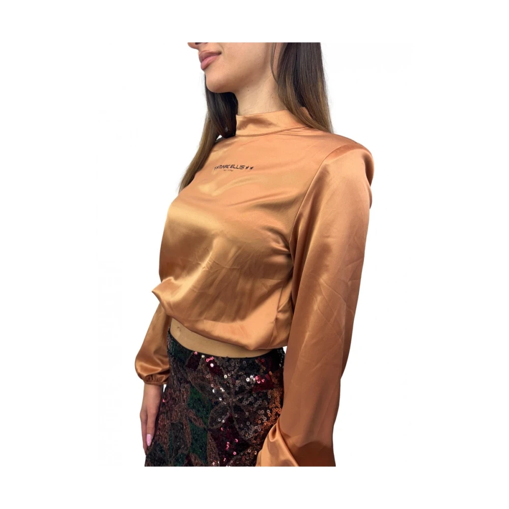 Upgrade je garderobe met deze bronzen blouse van Marc Ellis. Gemaakt van 97% polyester en 2% elastaan, straalt het elegantie en stijl uit.
