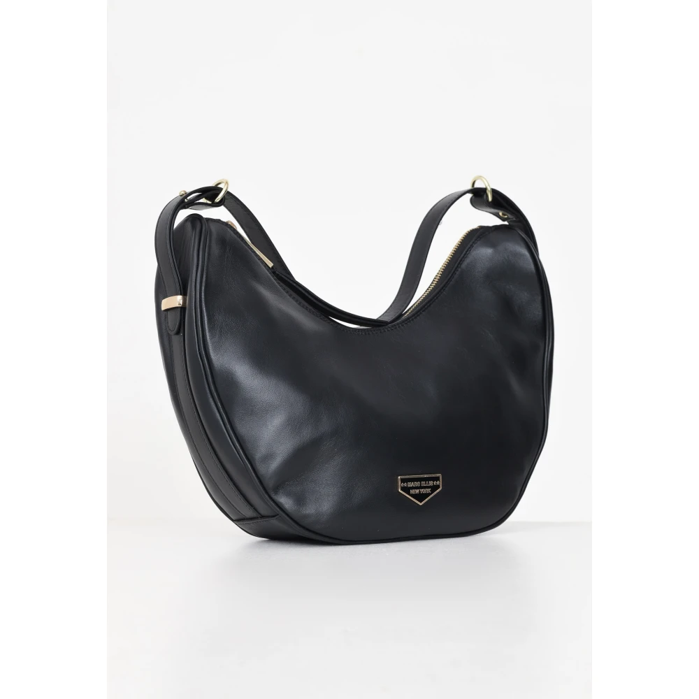 Upgrade je stijl met deze Marc Ellis Miami M zwarte schoudertas voor vrouwen met een metalen logopatch. De tas heeft een halvemaanvorm met een handvat en verstelbare schouderband. Het gevoerde interieur bevat een ritswandzak. Afmetingen: 32x 25x 7cm. Ideaal voor herfst-winter seizoen.