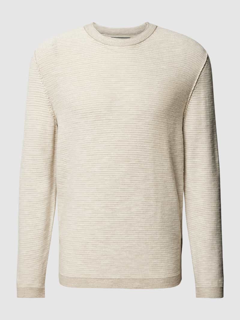 Met fijne, garengeverfde structuur: nonchalante trui met ronde hals van een hoogwaardige mix van gecertificeerd katoen en linnen met averechte steek in inside-out-look. In een losse regular fit met een geribde ronde halslijn, Franse schouderafwerking met volledig ouderwetse details, naar buiten gerichte naad aan de mouwuiteinden en smalle manchetten aan de mouwuiteinden en zoom.