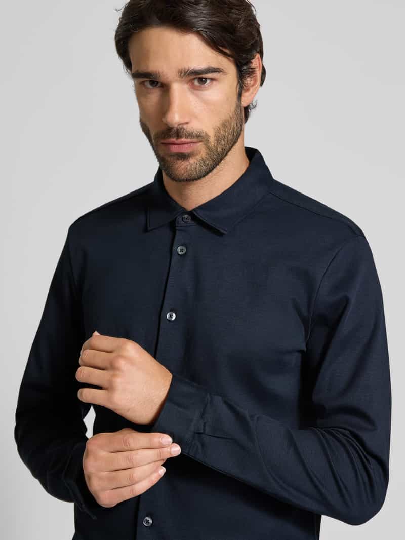 Vrijetijdsoverhemd van Marc OPolo voor heren. Look: effen. Pasvorm: Regular fit. Overhemdkraag: Kentkraag. Knoopsluiting: doorknoopsluiting. Applicatie: Labelpatch. Sluiting: enkele knoopsluiting. Mouwvorm: lange mouwen. Type manchet: Manchetten met n knoop. Materiaalverwerking: Jersey. Materiaal: puur katoen. Ruglengte bij maat M: 69 cm. Borstomvang bij maat M: 54 cm. Schouderbreedte bij maat M: 43 cm. Mouwlengte bij maat M: 66 cm