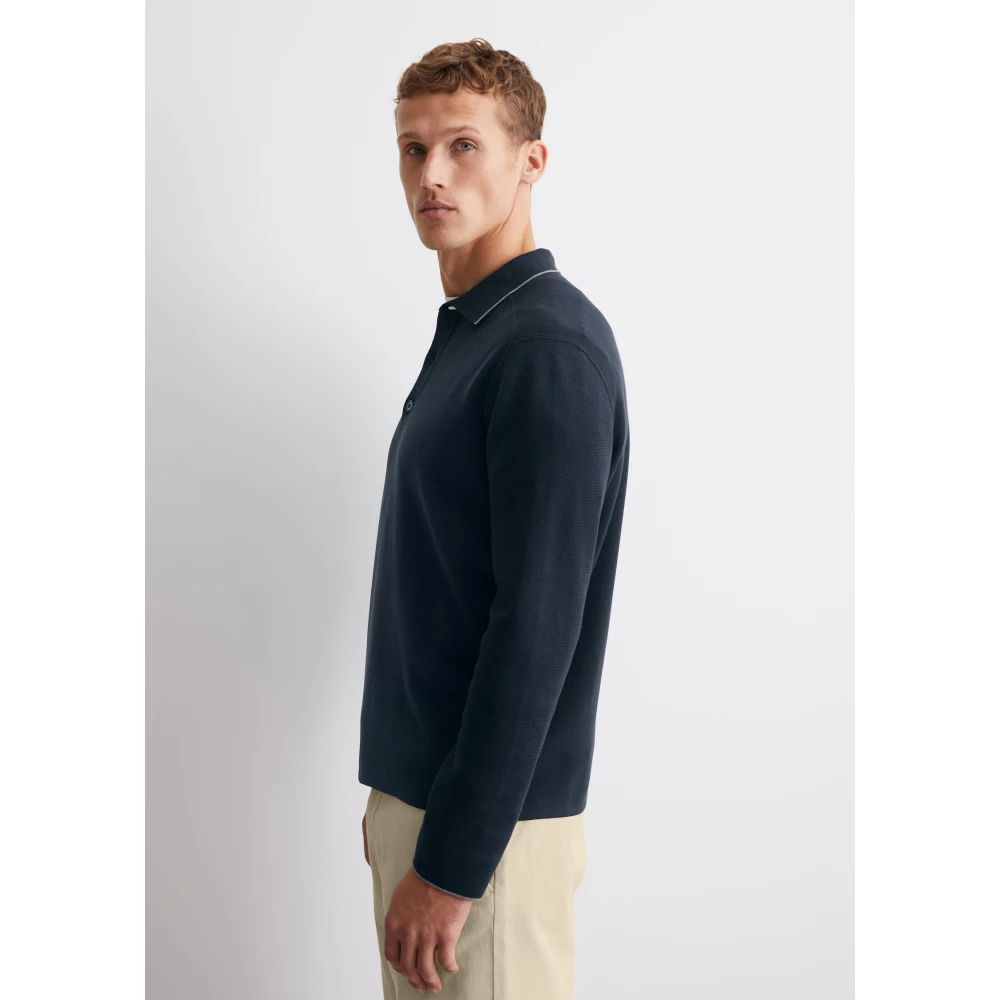 Sportieve update van de trui: dit slimme polostijl stuk is gemaakt van puur katoen en komt in een dichte, gelijkmatige Milano-gebreide stof met een glad oppervlak. Contrasterende strepen op de kraag en manchetten voegen accenten toe. De klassieke regular fit heeft een typische platgebreide kraag, een korte knoopsluiting met logoknopen en een rechte zoom. De lange mouwen eindigen in compacte geribbelde manchetten en er is een subtiel logoborduursel boven de zoom. 100% katoen x x voorzichtig wassen op koud, niet bleken, niet in de droger drogen, medium strijken, niet chemisch reinigen
