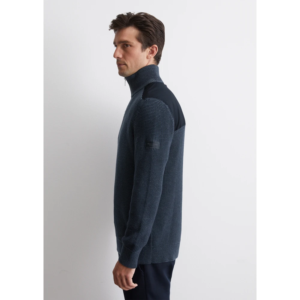 Deze hoogwaardige gebreide trui gemaakt van puur katoen met een stijlvol tweekleurig effect is een casual mix van materialen. Glad geweven inzetstukken in het schoudergebied geven het ontwerp een moderne uitstraling. De ribgebreide kraag, geribde manchetten en zoom evenals de korte rits zijn subtiel contrasterend van kleur en creren een harmonieus contrast. In een klassieke regular fit en met een siliconen logopatch op de bovenarm. 100% katoen. Zacht wassen op koud, niet bleken, niet in de droger drogen, medium strijken, niet chemisch reinigen