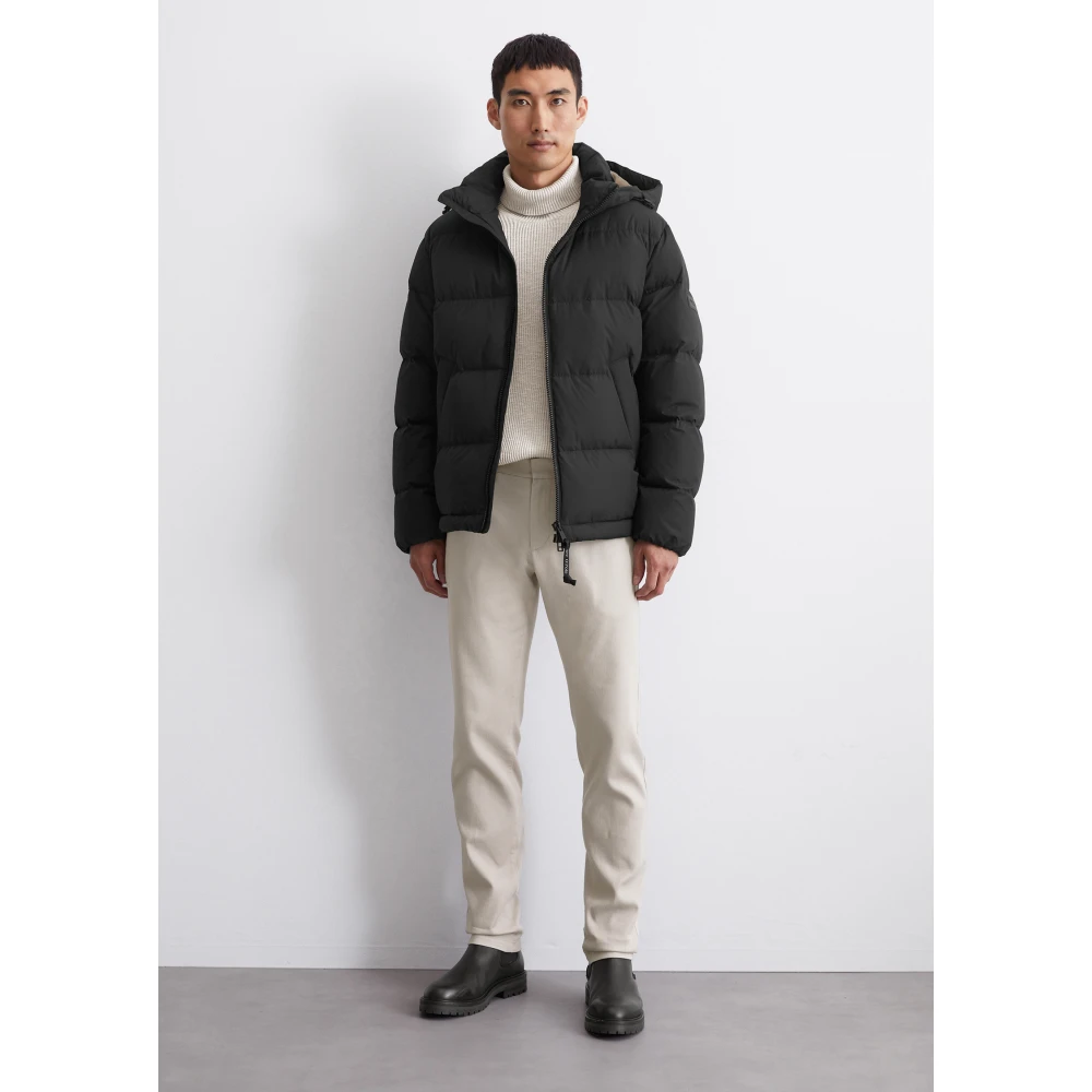 Donsjack van Marc O'Polo voor heren. Look: effen. Kraagmodel: afneembare capuchon. Pasvorm/model: Regular fit. Applicatie: Labelpatch, lus met label voor rits. Details: Elastiek in de capuchon en rompzoom. Sluiting: Ritssluiting. Mouwvorm: lange mouwen. Mouwboord: elastisch. Rompzoom: elastisch tunnelkoord. Bijzondere kenmerken: echte dons, PFC-vrij. Functie: waterafstotend. Zakken: binnenzak met ritssluiting, steekzakken opzij met knoop. Ruglengte bij maat M: 71 cm. Borstomvang bij maat M: 64 cm. Schouderbreedte bij maat M: 50 cm. Mouwlengte bij maat M: 64 cm