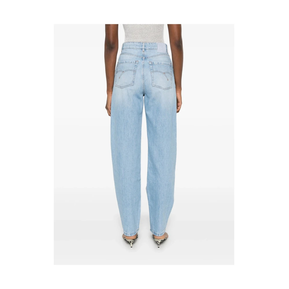 Marella lichtblauwe losvallende jeans voor vrouwen met verborgen gulp en knoopsluiting, riemlussen, klassieke vijf zakken en logopatch op de achterkant.