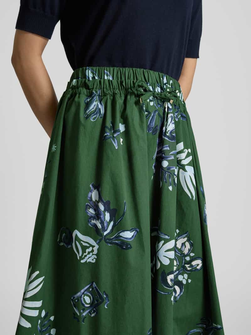 Midirok van MARELLA. Mix van katoen en elastaan. A-lijn. Model 'ZAMBIA'. Elastische band met tunnelkoord. Bandwijdte bij maat 36: 38 cm. Totale lengte bij maat 36: 81 cm