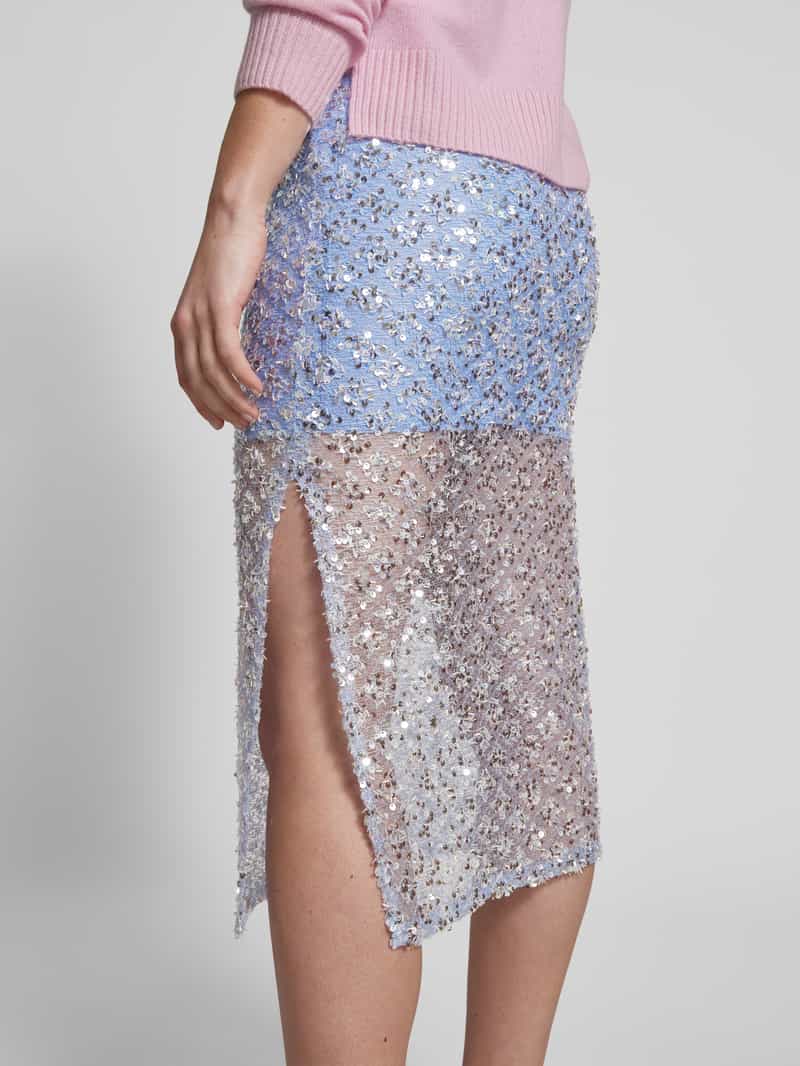 Midirok van MARELLA. Recht model. Ritssluiting opzij . Model 'PRATER2'. Semi-transparant design. Niet-doorschijnende onderrok. Met pailletten. Bandwijdte bij maat S: 38 cm. Totale lengte bij maat S: 82 cm