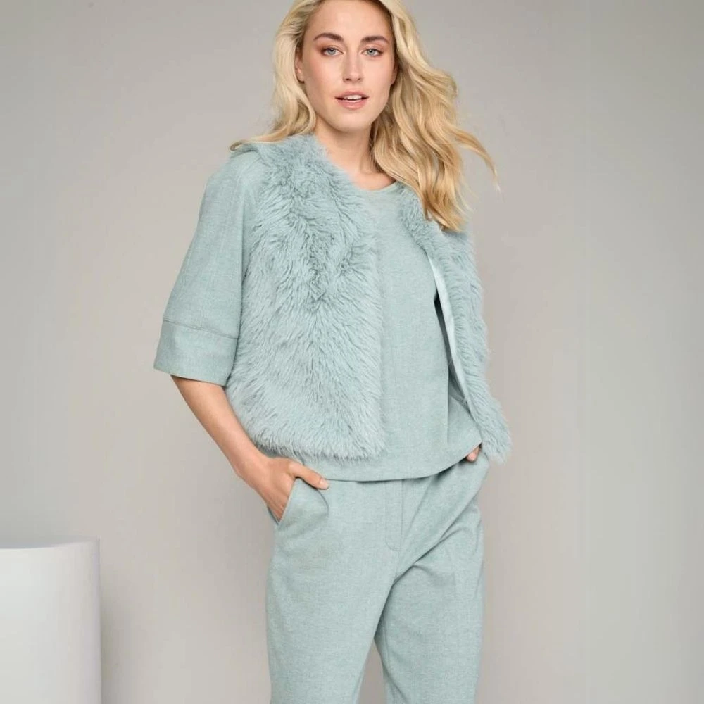Ervaar de moeiteloze elegantie van onze stijlvolle mintgroene blouse van Marie Mro. Dit veelzijdige stuk heeft korte mouwen, een losse pasvorm en wijde mouwen voor ultiem comfort en een ontspannen uitstraling. Perfect voor elke gelegenheid, of het nu een informeel weekenduitje is of een verfijnde zakelijke setting. Combineer deze grijze blouse met je favoriete jeans voor een relaxte stijl of met nette broeken voor een chique look.