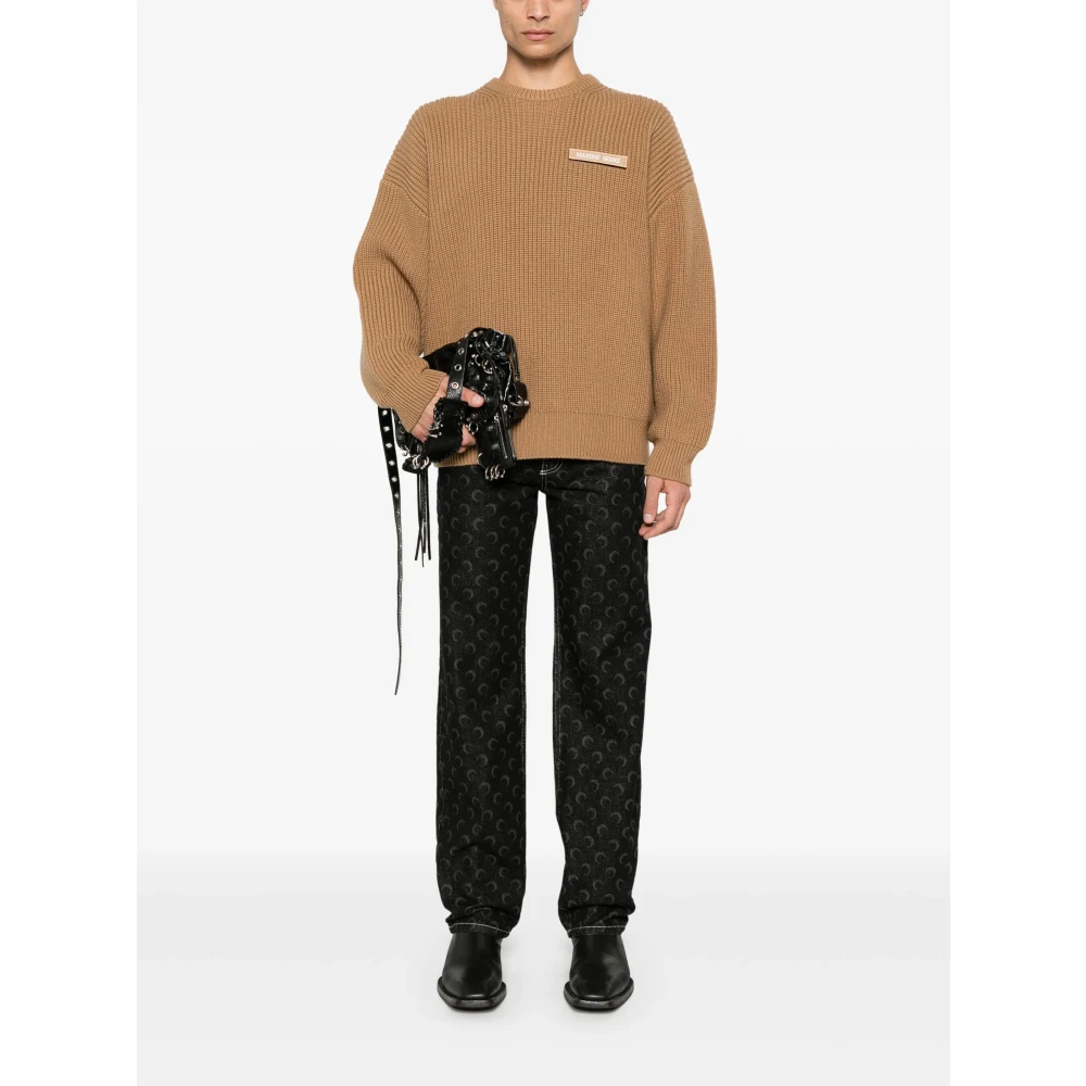 Upgrade je garderobe met de Marine Serre MS Half Cardigan Knit Crewneck Sweater. Gemaakt van luxueuze kameelbruine merinowol, dit modieuze stuk heeft een stijlvolle geribbelde mesh textuur en opvallende logopatches aan de voorkant. Met zijn ronde hals en lange mouwen is het perfect voor laagjes of om op zichzelf een statement te maken. De zoom en geribbelde randen voegen een vleugje verfijnd detail toe aan deze trendy, internationale designertrui. Ideaal voor degenen die hoge mode en samengestelde, kunstzinnige kleding waarderen.