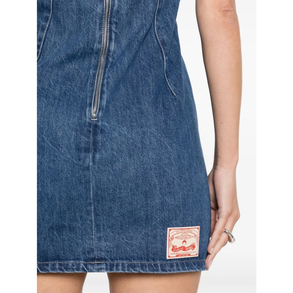 Upgrade je dagelijkse look met deze Marine Serre navy blauwe katoenen denim jurk met een unieke halve maan print. Het mouwloze ontwerp, ronde hals en naaddetails voegen een vleugje verfijning toe aan dit dij-lange stuk. Compleet met een logo patch op de achterkant, rechte zoom en ongevoerde afwerking, is deze jurk perfect voor elke gelegenheid. De achterkant ritssluiting zorgt voor gemakkelijk dragen. Ware maat, we raden aan om je normale maat te bestellen. Model is 1, 75m / 5ft 8in en draagt maat 36 (Fr).