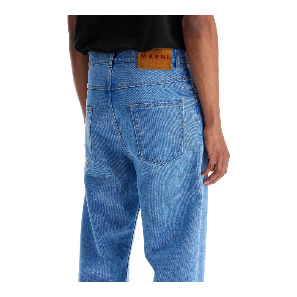 Upgrade je casual stijl met deze Marni straight jeans voor heren. Gemaakt van denim met een gewassen effect coating, hebben deze jeans een relaxte pasvorm, lage taille en klassiek vijf zakken ontwerp met contrasterende stiksels. Afgewerkt met riemlussen, rits en logoknoopsluiting. Het model is 182 cm lang en draagt maat 30.