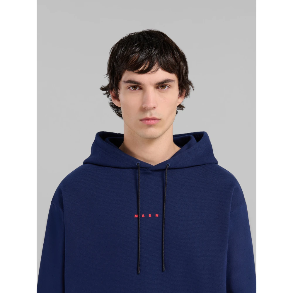Navy blauwe hoodie met logo aan de voorkant van Marni, perfect voor mannen
