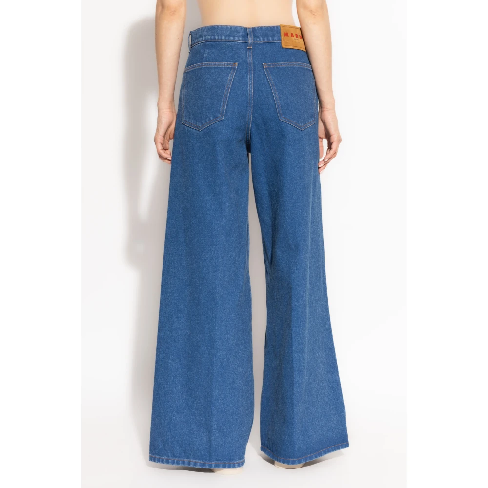 Upgrade je denim look met deze Marni wide-leg jeans. Voorzien van een logo patch bij de muntzak, mid-rise pasvorm, top-knoop en ritssluiting, riemlussen, vijf zakken en een logo patch achteraan. Gemaakt van 100% katoen. Handwas