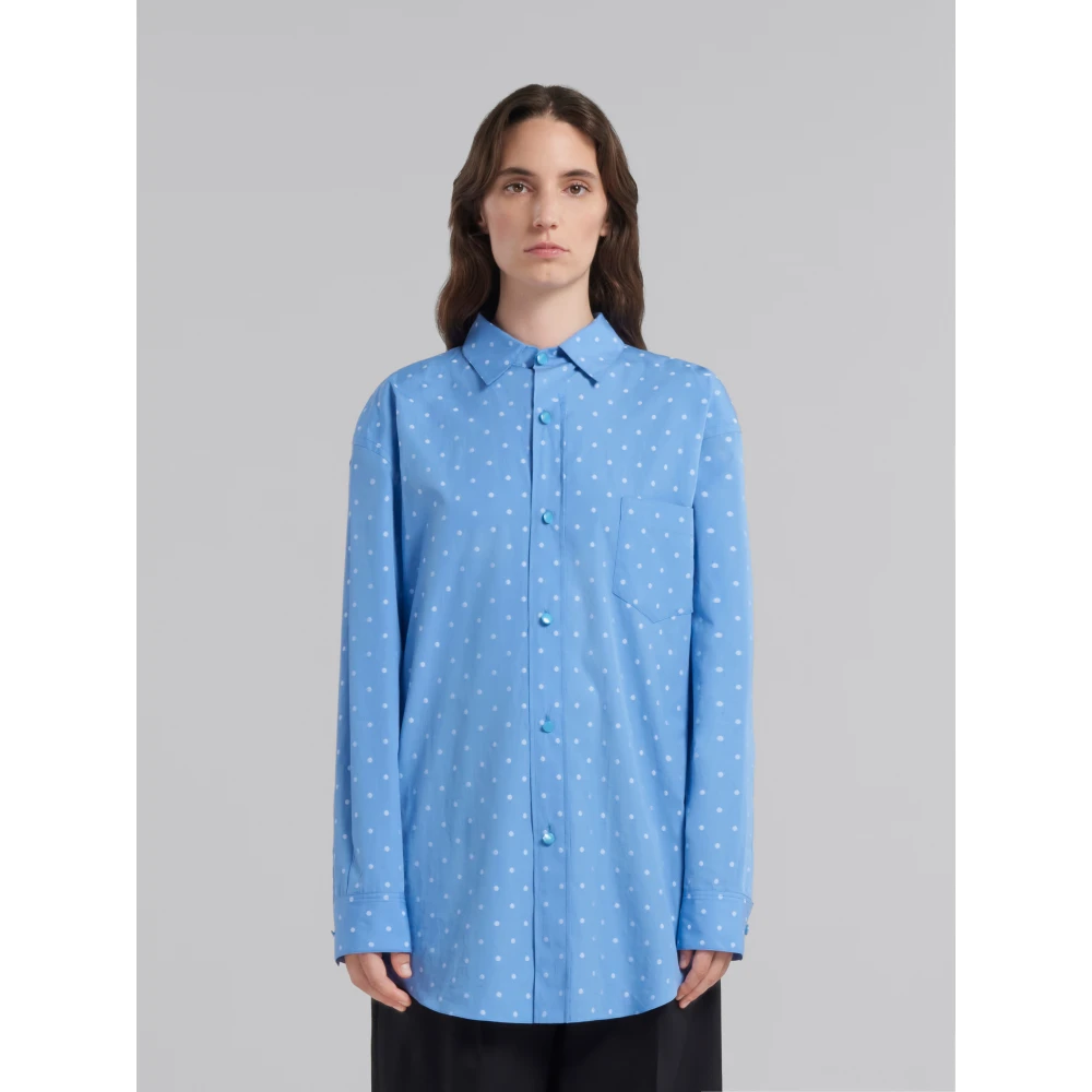 Upgrade je garderobe met deze Marni blouse met lange mouwen voor dames. Gemaakt van hoogwaardig popeline met micro polka dots. Gedetailleerd met een geborduurde streep op de kraag en manchetten. Voorzien van een borstzakje met het geborduurde Marni-logo. Gemaakt in Itali met de grootste zorg en precisie. Machinewasbaar op 30C op een delicaat programma. Vermijd bleken en drogen in de droger. Hangend drogen in de schaduw om de blouse in perfecte staat te houden. Strijk op een maximale temperatuur van 110C. Voor professionele reiniging kies je voor delicate chemische reiniging met koolwaterstoffen. Hoofdstof: 100% geweven katoen - voering: 100% katoen. Lengte: 78, 0000.