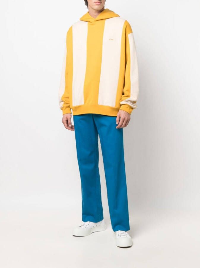 Mid waist, riemlussen, verborgen gulpsluiting , taille met ceintuur, logopatch aan de voorzijde, geborduurd logo aan de achterkant, twee paspelzakken aan de achterkant en straight-fit. Materiaal: katoen.
