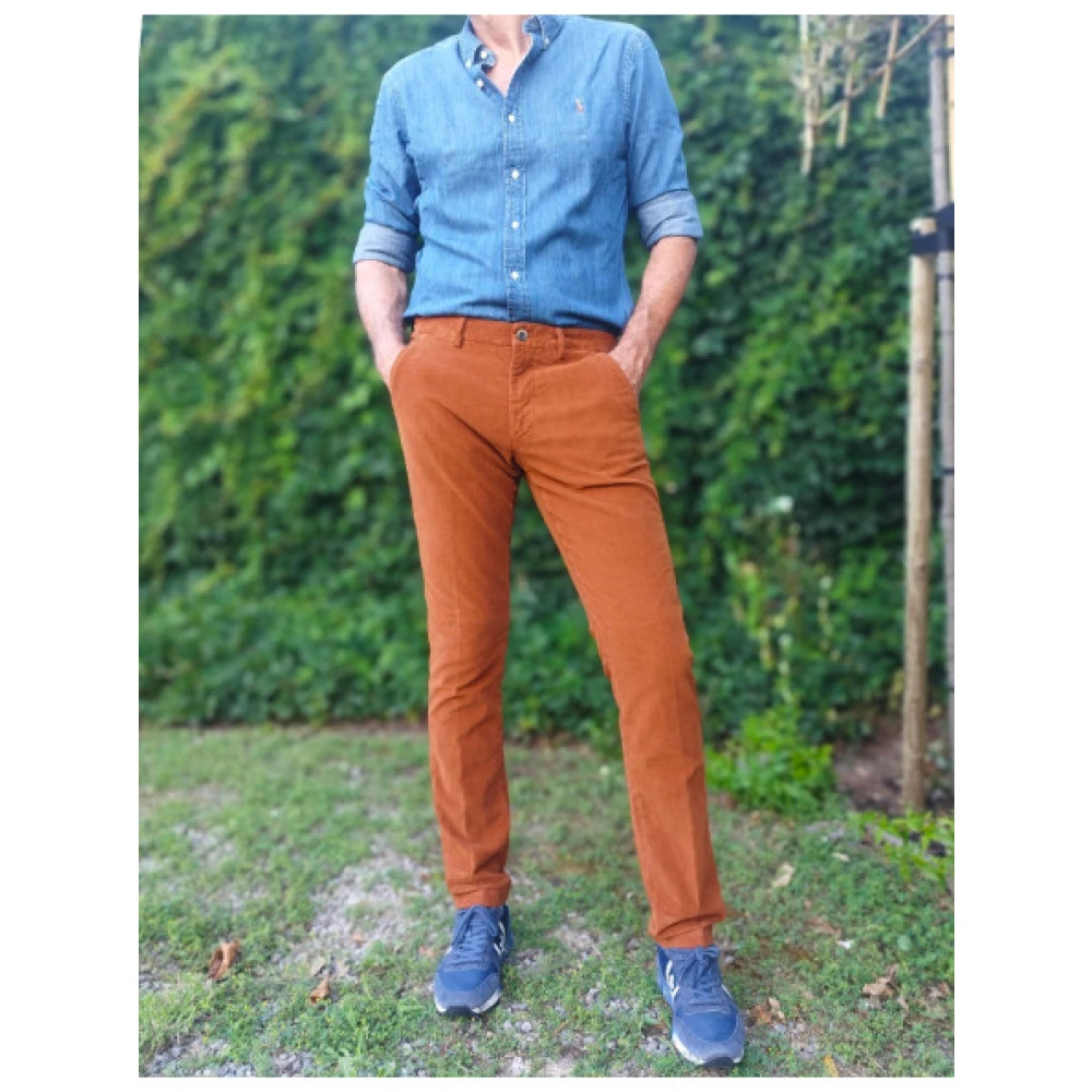 Deze Mason`s chino`s zijn gemaakt van een fijn geribbelde katoenen fluwelen stof met een vleugje stretch. Ze hebben een ritssluiting en knoopsluiting met riemlussen, twee schuine voorzakken en twee knoopsluiting paspelzakken aan de achterkant. De broek is versierd met een klein geborduurd Mason`s logo aan de achterkant. Onderdeel van de iconische wintercollectie van het merk, zijn deze fluwelen broeken verkrijgbaar in Italiaanse maten. Het model draagt maat 50It. Houd er rekening mee dat dit model neigt naar een ruime pasvorm. - 97% katoen en 3% elastaan - Slim fit.
