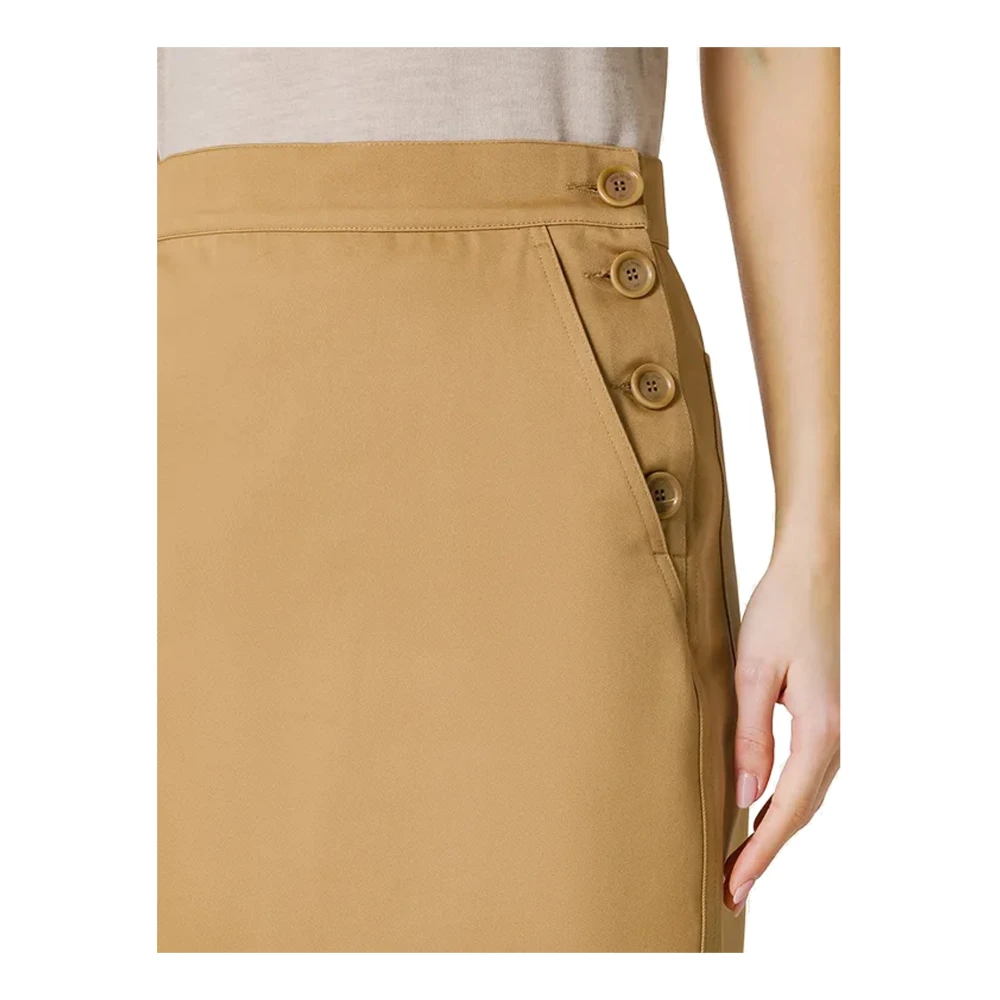 Upgrade je garderobe met de Max Mara Sfilata Cresta Pencil Skirt in rijk bruin. Gemaakt van 100% katoen, het heeft verstelbare kruisbandjes en stijlvolle opgestikte zakken. Perfect voor elke gelegenheid, dit rokje combineert elegantie en comfort moeiteloos