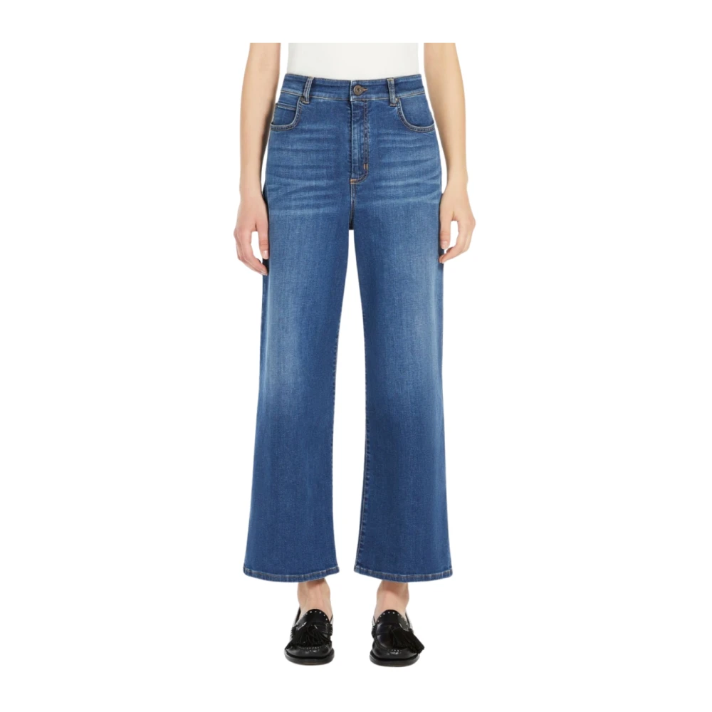 Upgrade je denim look met deze Max Mara straight jeans. Gemaakt van een katoenmix in medium indigo blauw, heeft het James model een 5-pocket design, metalen knoop- en ritssluiting, licht uitlopende pijp en een regular fit.