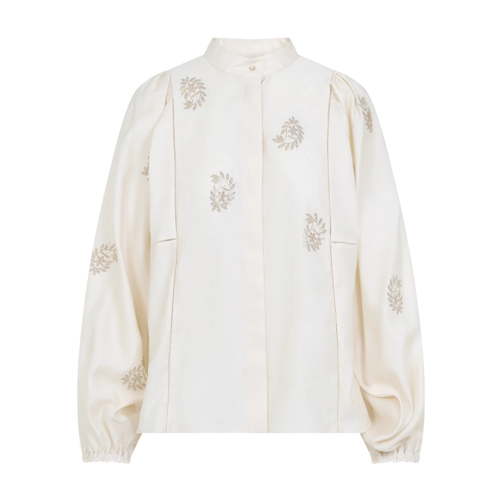 Max Mara 001 Bianco Tela Caladio Blouse met Borduurwerk in 100% Katoen voor Vrouwen