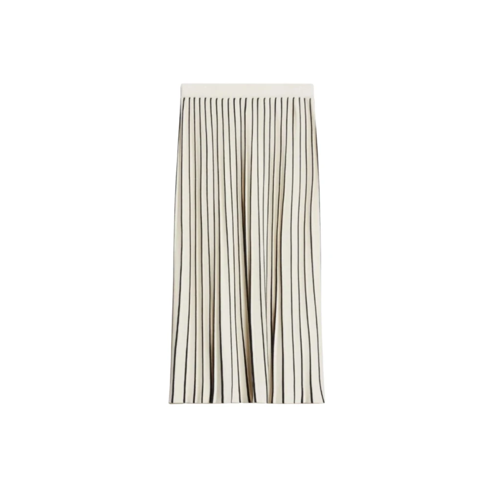 Een veelzijdige metgezel voor elke gelegenheid. De A-lijn snit, elastische tailleband en zachte geplooide stof zorgen voor een flatterende pasvorm en comfortabel draagcomfort. Het gestreepte ontwerp maakt het een echte blikvanger en perfect te combineren met een gebreide trui of blouse.