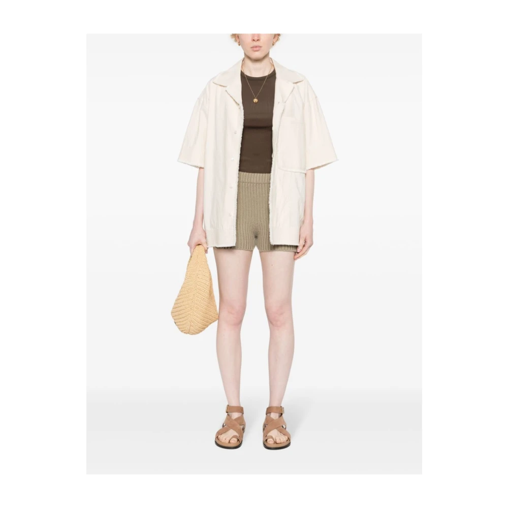 Max Mara khaki stretch-katoenen visserstricot short shorts met een elastische tailleband, hoge taille, dij-lengte, ongevoerd en rechte zoom. Perfect voor de modebewuste vrouw.