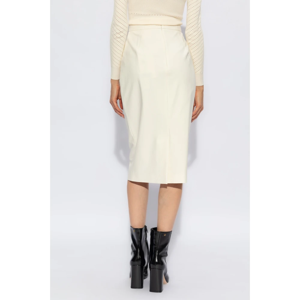 De exclusieve `Eden` kokerrok van de gerenommeerde ontwerper MAX Mara belichaamt klasse en subtiele smaak. Gepresenteerd in een crmekleur, sluit het aan bij de laatste trends en behoudt het tijdloze elegantie. Gemaakt van een hoogwaardige mix van katoen met een vleugje elastaan, zorgt het niet alleen voor een verfijnde uitstraling maar ook voor comfort gedurende de dag. De klassieke, midi kokerrok, die zachtjes het figuur omarmt vanaf de heuplijn tot halverwege de kuit, toont het figuur op elegante wijze en benadrukt vrouwelijke rondingen. De gladde, licht glanzende stof voegt een uitzonderlijke gratie toe aan de algehele uitstraling. De rok heeft een hoge taille, die in combinatie met een discrete split aan de achterkant niet alleen de troeven van het figuur benadrukt maar ook zorgt voor bewegingsvrijheid. Een verborgen rits en haak-en-oogsluiting aan de achterkant getuigen van de functionaliteit en aandacht voor detail. Het ontbreken van zichtbare logo's of ornamenten benadrukt het minimalistische karakter van de rok, waardoor deze gemakkelijk kan worden gentegreerd in verschillende stijlen - van zakelijke kleding tot elegante avondensembles. Waarom Investeren IN DIT Stuk? * De veelzijdigheid van de kleur en snit, waardoor gemakkelijk kan worden gecombineerd met andere kledingstukken. * Hoogwaardige materialen, die zowel een elegante uitstraling als comfort bij het dragen garanderen. * Een minimalistisch ontwerp, waardoor de rok een tijdloze garderobe-investering is. * Zorgvuldig vervaardigde details, zoals de verborgen rits, haak-en-oogsluiting en achterste split, die een hoge uitvoeringsstandaard weerspiegelen. Modelafmetingen Hoogte: 176cm Buste: 85cm Taille: 60cm Heupen: 89cm Model draagt maat: 38