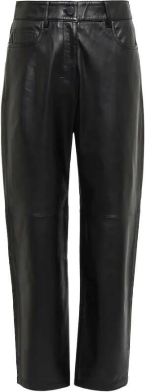 Max Mara Leren Broek. Gemaakt van zacht gecoat materiaal met lederen details en stiksels. Dit enkel-lange model heeft een licht uitlopende, aansluitende pasvorm met achterzakken. Verborgen ritssluiting en haaksluiting. Samenstelling EN Onderhoud: 100% polyester gebreide stof; polyurethaan harscoating. Handwas met koud water; niet bleken; niet in de droger; plat drogen in de schaduw; strijken op lage temperatuur; zeer delicate chemische reiniging, elk oplosmiddel behalve trichloorethyleen; geen professionele natte reiniging; gebruik een doek tussen het kledingstuk en het strijkijzer; gebruik neutrale wasmiddelen; niet wrijven; keer het kledingstuk binnenstebuiten voor het wassen; rek in vochtige toestand.