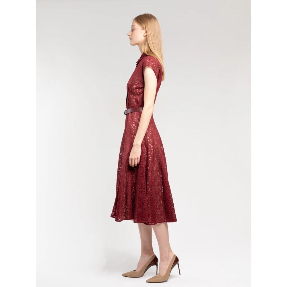 Upgrade je garderobe met de Studio Max Mara Finito overhemdjurk. Deze A-lijn jurk met overhemdkraag en korte mouwen heeft een vrouwelijk bloemen macram kant ontwerp en is getailleerd met een bordeauxrode imitatieleren riem. Een romantische en elegante keuze! - Lengte: 118 cm.
