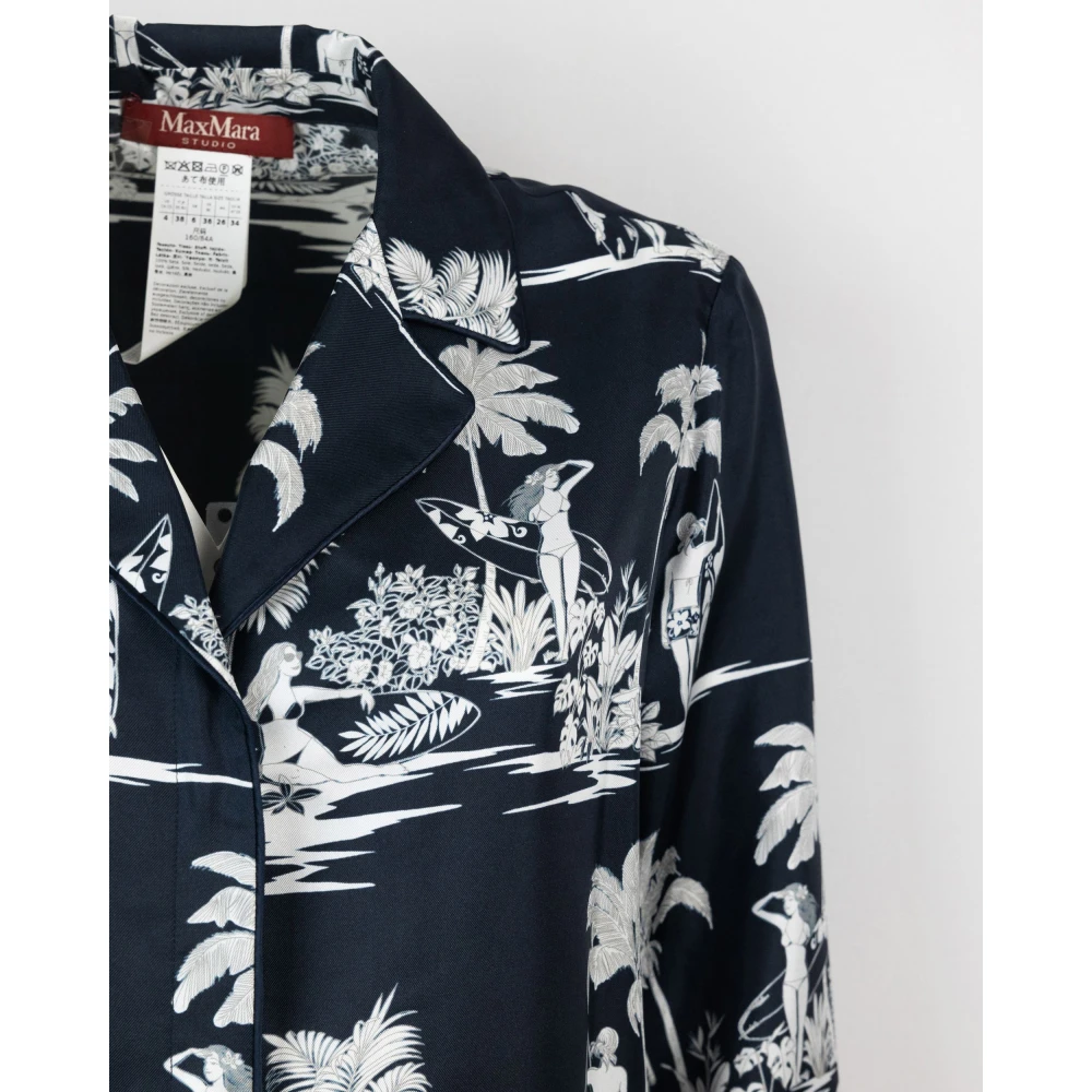 Upgrade je garderobe met deze Max Mara Studio zijden bedrukte blouse. Met een rechte pasvorm, reverskraag en lange mouwen met knoopmanchetten. Alleen chemisch reinigen. Gemaakt van 100% zijde, exclusief decoraties.