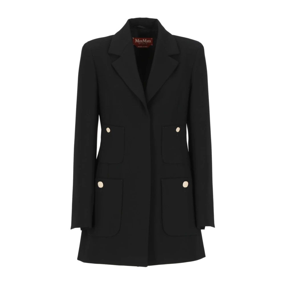 Upgrade je stijl met deze Max Mara Studio single-breasted blazer. Gemaakt van luxe wol crepe, deze blazer heeft een piek reverskraag, lange mouwen met knopen op de manchetten en opgestikte zakken aan de voorkant. Het gevoerde model heeft een centrale split aan de achterkant en sluit met een enkele metalen knoop.