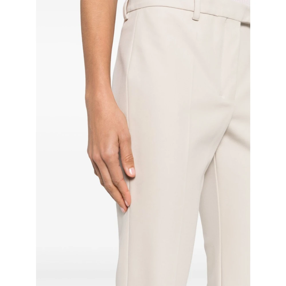 Max Mara Cropped Trousers voor vrouwen in beige ecru met een stretchy design, riemlussen, gestreken vouw, cropped snit, dart detail en verborgen voorsluiting met knopen, haak en rits. Samenstelling: 47% viscose, 45% katoen, 8% spandex/elastaan.