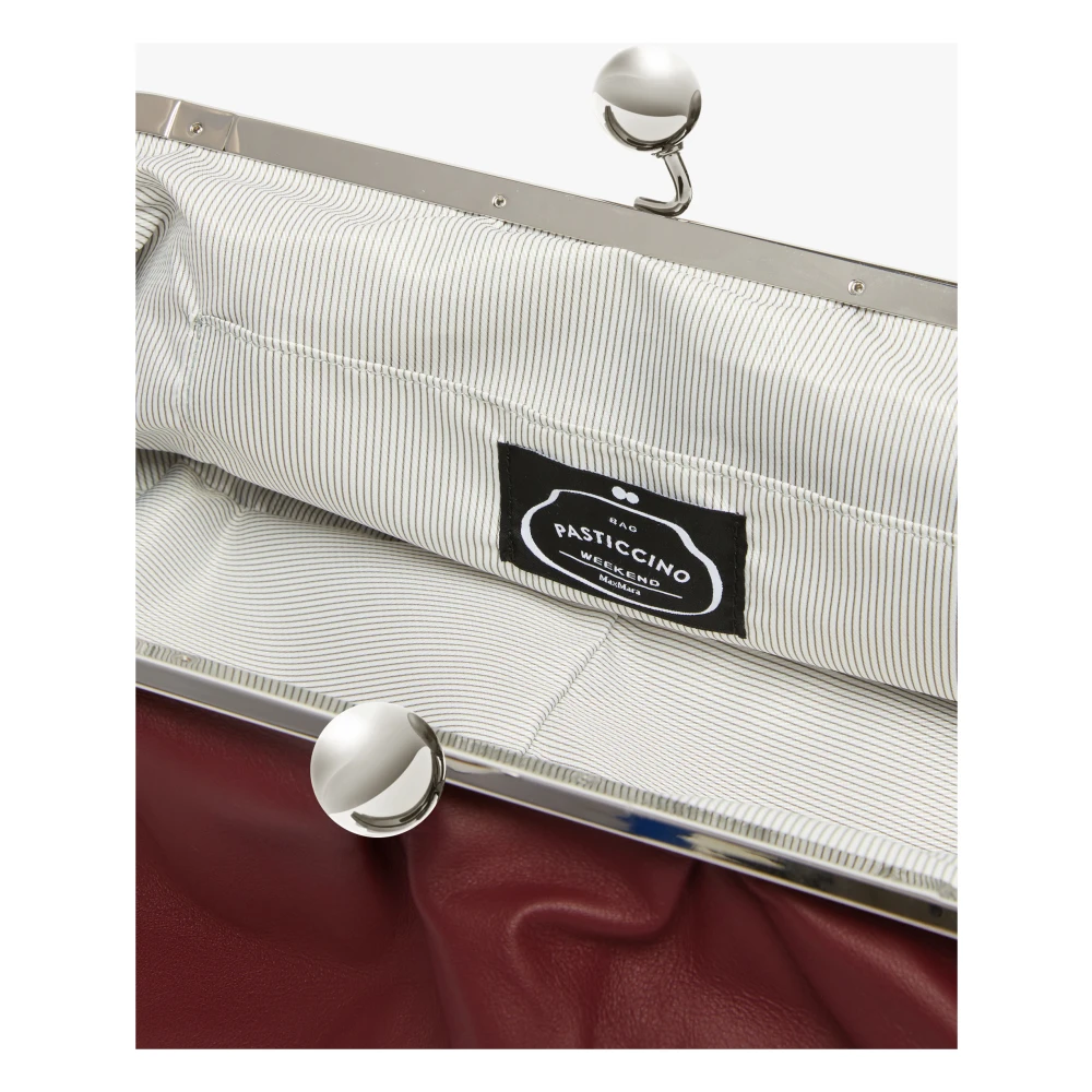 Max Mara Weekend presenteert de Pasticcino Bag Large in een nieuw verlengd ontwerp, vervaardigd van zacht leer met pinces motief dat het bijzonder ruime volume accentueert. De dubbele afneembare leren en ketting schouderband met leren inzet maakt het mogelijk om de tas crossbody of met de hand te dragen voor een veelzijdige en trendy outfit. Dankzij de gedestructureerde vorm en opzettelijk oversized verhoudingen past het zich aan aan al uw behoeften. Iconische clutchsluiting met rits en metalen bolletjes met Weekend Max Mara belettering en logo. Gepersonaliseerd label aan de binnenkant. Afmetingen: 44 x 11 x 24 cm. Materiaal: 100% leer.