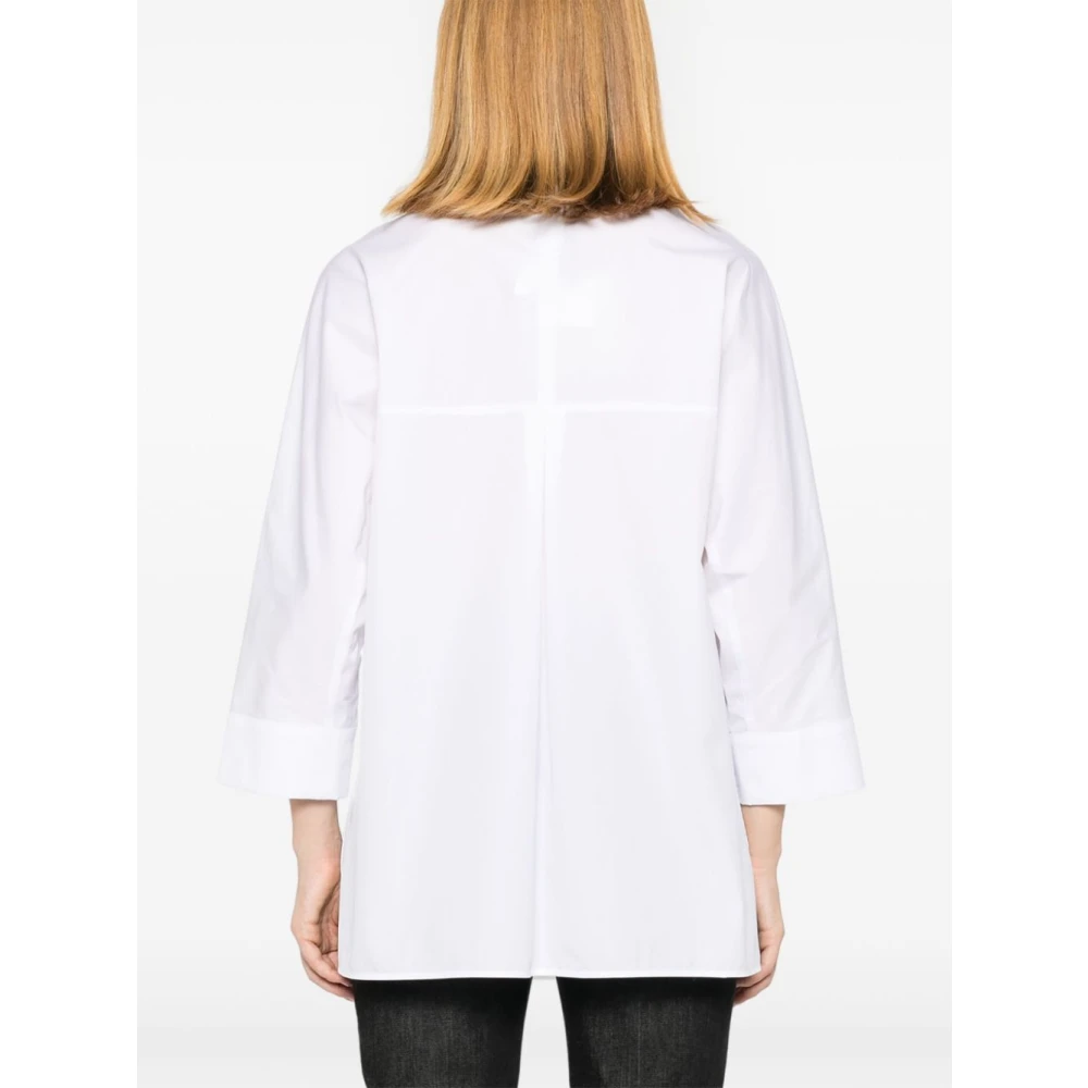 Max Mara damesoverhemd in het wit, met lange mouwen, klassieke kraag en gebogen achterzoom. Gemaakt van 100% katoen.