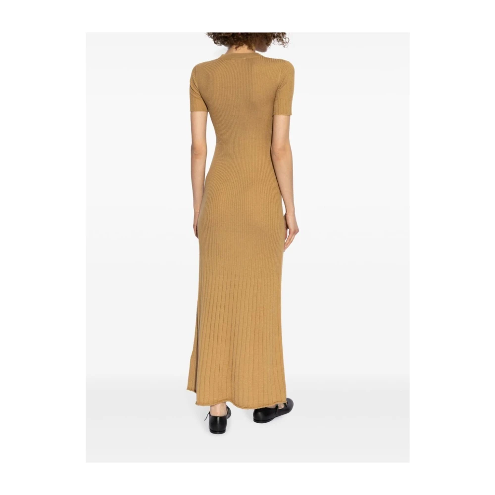 Upgrade je garderobe met deze Max Mara gebreide jurk. Gemaakt in Itali van een luxe mix van 55% zijde en 45% kasjmier, heeft deze lange jurk een ronde kraag, korte mouwen en een split aan de zijkant. In een chique kamelkleur is het een veelzijdig stuk voor de moderne vrouw.