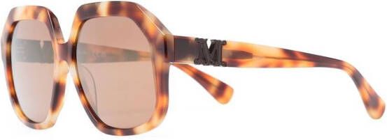 Kastanjebruin, schildpad montuur, vierkant montuur, bruine glazen, logoplakkaat op het pootje, neuskussentjes, rechte pootjes, gebogen uiteinde en glazen met UV-bescherming. Deze bril wordt verkocht met een beschermhoes..