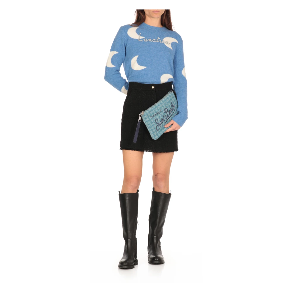 Upgrade je stijl met deze lichtblauwe St. Barth wollen blend clutch voor vrouwen. Voorzien van een ritssluiting, een afneembaar handvat en een verstelbare en afneembare schouderriem. De tas heeft een all-over Tweed patroon met voor- en achterkant contrasterende geborduurde logo's. Afmetingen: Hoogte - 20 cm, Lengte - 28 cm, Diepte - 2 cm, Handvat Drop - 10 cm, Schouderriem Drop - 50 cm.