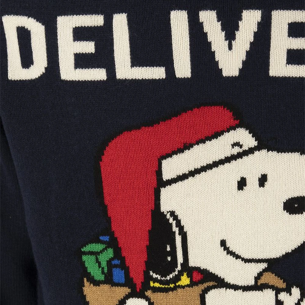 De Snoopy Delivery trui is een stijlvolle aanvulling op je breiwerkcollectie, gemaakt van een luxe mix van wol en kasjmier. Ideaal om je casual outfits een unieke touch te geven. Belangrijkste kenmerken: Blauw | Wol | Ronde hals | Lange mouwen | Geribbelde boord en manchetten | Afmetingen en pasvorm: Regular fit | Samenstelling en onderhoud: 90% wol | 10% kasjmier | Koud wassen in de machine, drogen op lage temperatuur in de droger