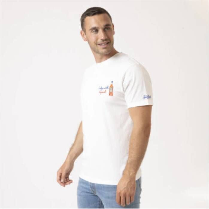Maak kennis met het MC2 Saint Barth Heren Wit Geborduurd T-shirt. Dit T-shirt met korte mouwen heeft een licht geribbelde ronde hals en een stijlvol borduursel van St. Barth op de linker mouw. Gemaakt van 100% katoen, biedt het een regular fit voor maximaal comfort. Perfect voor elke casual gelegenheid, is dit T-shirt een must-have toevoeging aan je garderobe.
