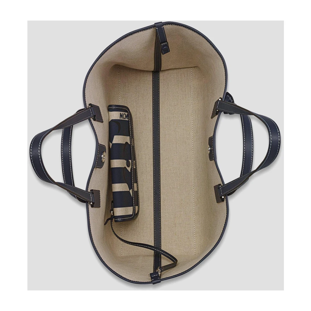 Afneembare tas, Beschermende leren voeten, Handgreepval: 11 cm, Afwerking: Natuurlijk nappaleer, Materiaal: Beach-Club grafische print canvas, Leren bovenhandvatten, Afneembare diamantvormige leren logohanger, Magnetische drukknoopsluiting, Zilverkleurige kobalthardware, Stoffen voering. Maat: 30, 0 x item Length Cms x 15, 0 cm