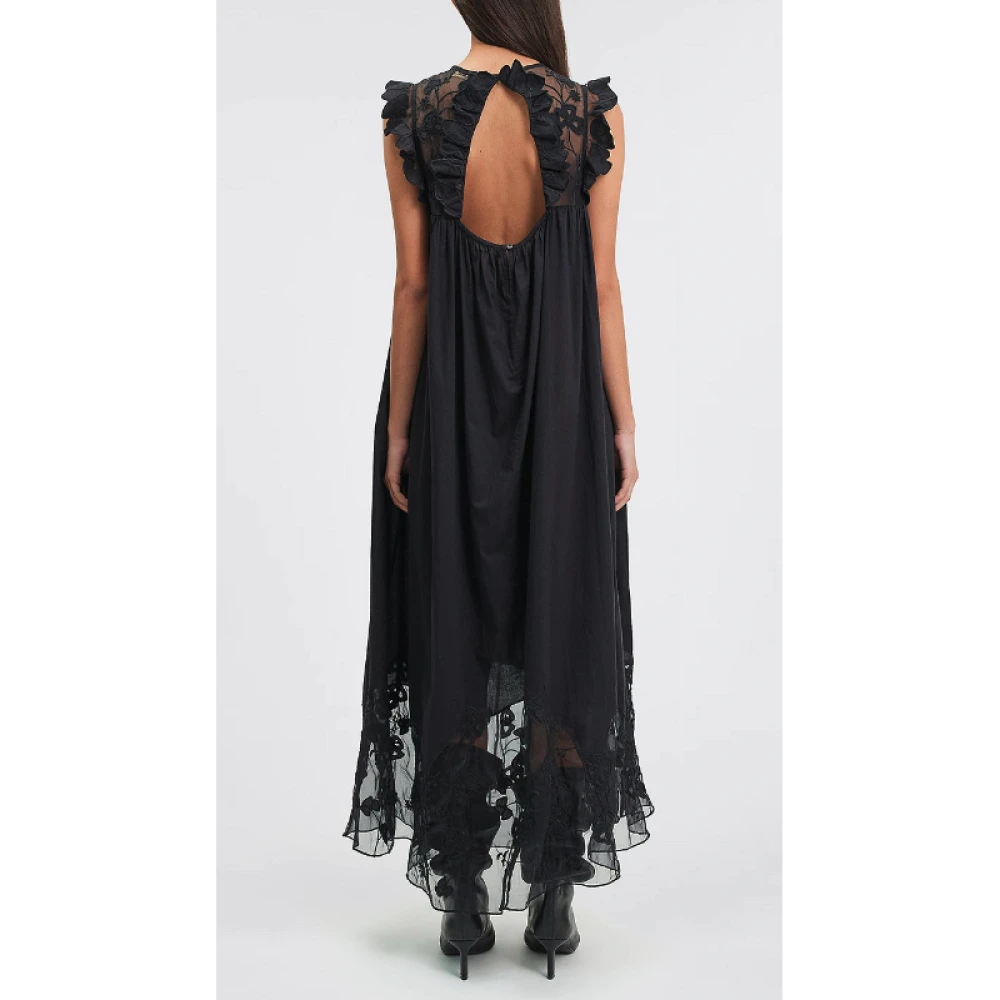 Upgrade je stijl met deze mouwloze zwarte katoenen en kanten top van Mes Demoiselles. Met een ronde halslijn, een knoopsluiting aan de achterkant en ruches bij de armsgaten. Gratis verzending in grootstedelijk Frankrijk voor bestellingen vanaf 150.