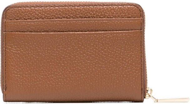 Goudkleurig logo, hoofdvak, vak met ritssluiting en kaartsleuven. Materiaal: leder.