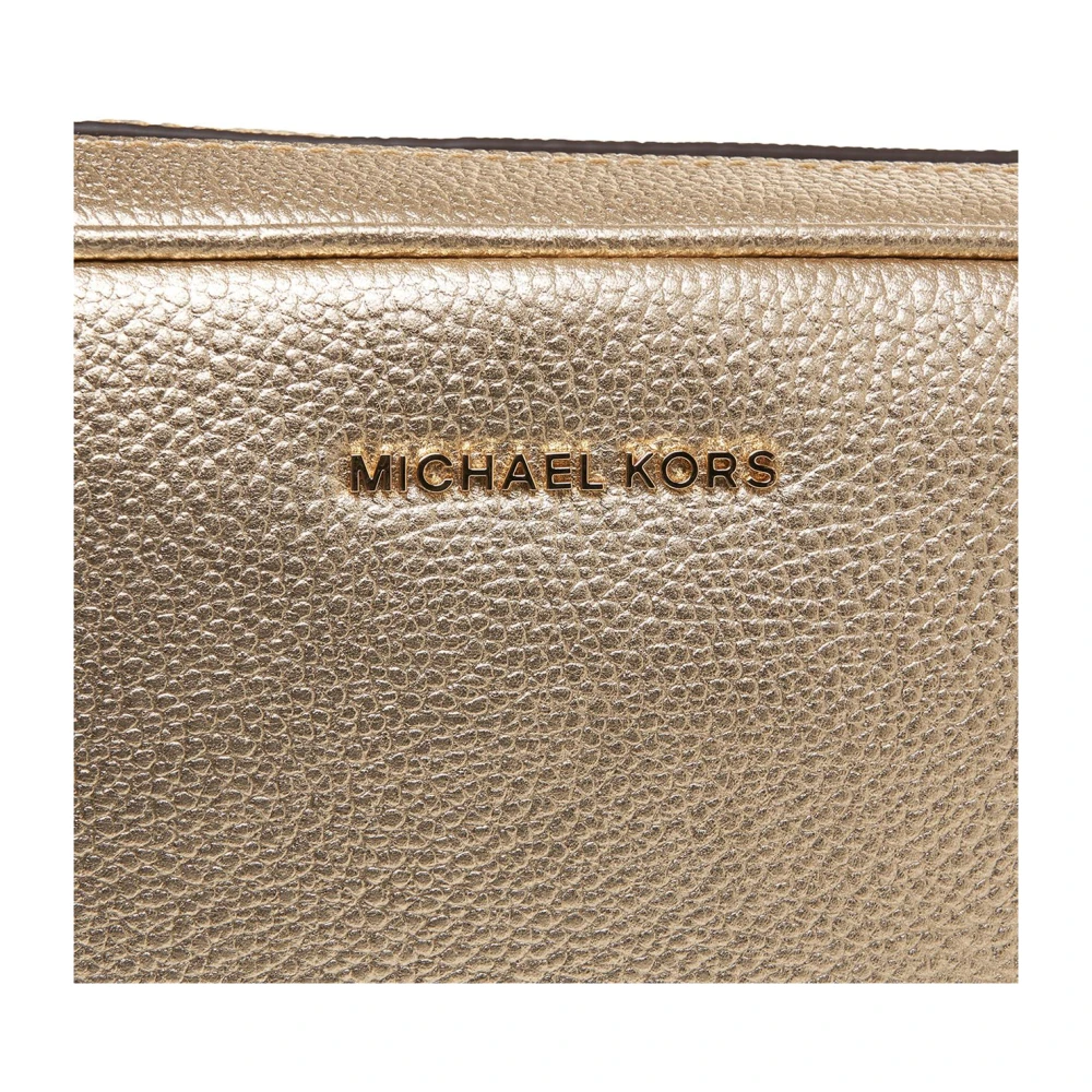 Verhoog je stijl met de 'Ginny' metallic schoudertas van Michael Kors. Met een chique ritssluiting, luxueus leer en een afneembare schouderband is het perfect voor elke gelegenheid. Compact maar ruim, het is een must-have accessoire! 21 x 14 x 5, 7 cm. Niet wassen.