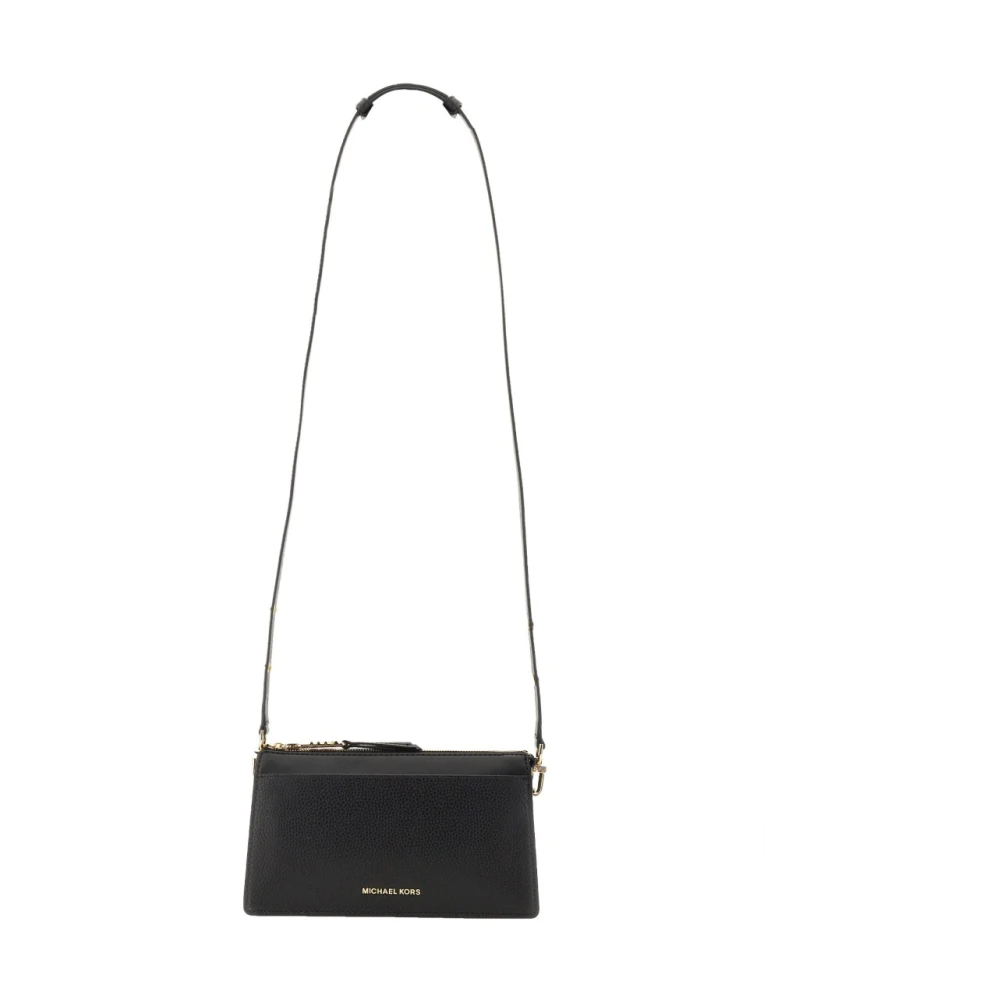 Ontdek de elegantie van de Michael Kors lederen schoudertas `Empire`, een veelzijdig accessoire gemaakt van 100% runderleer, perfect voor zowel overdag als `s avonds. Belangrijkste kenmerken: Zwart | 100% runderleer | Verstelbare schouderband | Steekvak aan de voorkant | Goudkleurig hardware | Ritsluiting | Afmetingen en pasvorm: 24, 1 cm B x 12, 7 cm H x 6, 4 cm D | Samenstelling en onderhoud: 100% runderleer | Voering: 100% polyester | Veeg schoon met een vochtige doek