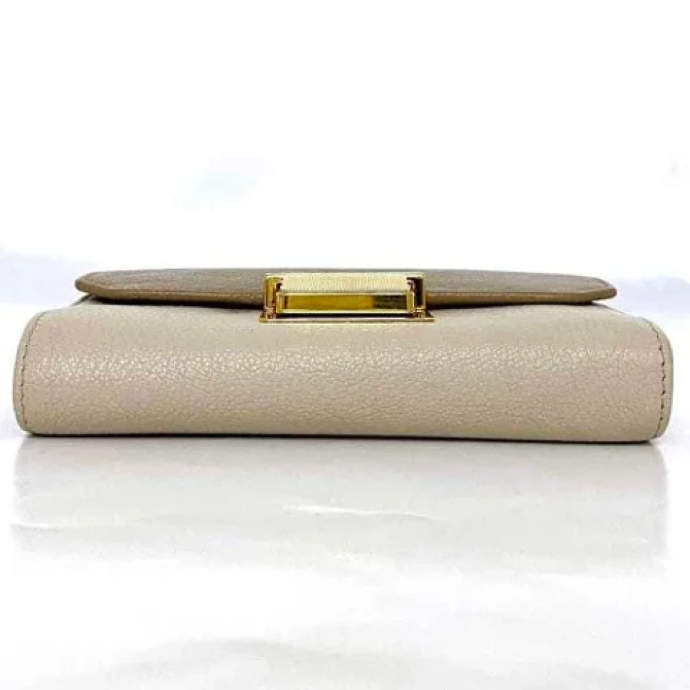 Miu Miu Miu Trifold Portemonnee Beige Bruin L-vormig Leer Miu Bicolor Dames Compact Staat: Goed, maar gebruikt. Een goed maar gebruikt item is gedragen en mogelijk gewassen, maar zal in goede staat zijn en goed verzorgd zijn. Het item zal zichtbare slijtage vertonen, maar de gebreken zullen minimaal zijn. Deze moeten worden vermeld en zichtbaar zijn op fotos.