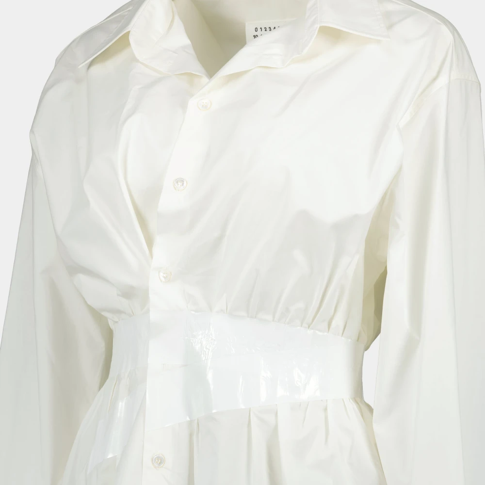 Ontdek het MM6 Maison Margiela wit overhemd met tape, een chique aanvulling op uw garderobe voor het voorjaar-zomer seizoen 2025. Gemaakt van hoogwaardig katoenen poplin, dit overhemd biedt een klassieke stijl met een moderne twist. Belangrijkste kenmerken: Wit | White | Katoenen poplin | Klassieke kraag | Lange mouwen | Afmetingen en pasvorm: Slim fit | Samenstelling en onderhoud: 100% katoen | Koud wassen in de machine, drogen in de droger op lage temperatuur